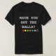 En T-tröja som visar en Snookerslogan ', har dig fick bollarna? visning som alla olik färg klumpa ihop sig under slogan.