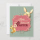 Bakgrund för ljust grönt anslagstavlor, väl dekorerad rosa och gult med ramtecken som lyder: ha ett spEGGtacular Påsk. Tillagt med ett gyllene band för gult i nedre lämnat hörn och den kutaste kaninen ansikte som går upp från skylten i övre högernas hörn.