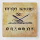 En ålderdomlig varning på ett gammalt parlament illustrerad med en stor vingdragon, höger ut ur en medeltida bestiary eller en sagobok.