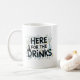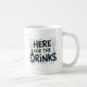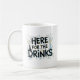 Få party igång med den här leksaken "Här för Drinks" mugg! Det livliga, fetstilta teckensnittet gör en påstående, medan brev "i" och "k" på ett smart sätt omvandlas till flaskor med bubblor som sipprar ut. Den övergripande utformningen känns som en pulserande poster i party, perfekt för alla som har kärlek roligt, drycker och bra. En underbar gåva till vänner, party-goister, eller något redo att fira!