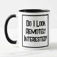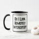 Lustigt slogan på en Tone mugg som säger: "Ser jag på mig?" Berätta för folk hur mycket du bryr dig om spelar ingen roll de är på. Svart och vit fet text.