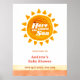Cute enkla minimalistisk "här kommer barnduschinbjudan", barndusch party-dekoration, välkomstskylt för babydusch, design med vattenfärg nedbränd orange sol och solskensdeka med gult och orange vattenfärg rand känns som sandströköken. Perfekt för pojke, solskenstema för babydusch. Du kan anpassa text och färg.