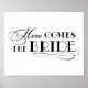 Här kommer bruden Svart bröllopsceremoni-skylt Poster