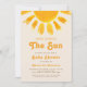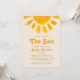 Den här babyduschinbjudan i gender-neutralt är dekorerad med en vattenfärg sol och "Här kommer Sol" i snyggtens återdosering. Enkelt anpassade. Använda Verktyg i Design om du vill ändra texten storlekt, stil eller färg. När vi skapar vår teckning hittar du inte den här bilden från andra designers. Ursprunglig vattenfärg © Michele Davies.