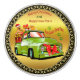 Här kommer jultomten i tass hund, parad lime grönt lastbil med ryggen fylld med gåvor och presenter.