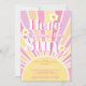 Den här färgstarka sol-temade flickans inbjudan till babydusch innehåller "Här kommer Sol" i retrotypografi på en pastellbakgrund med rosa, gult och stark solnedgång med vita daisy. Enkelt anpassade.