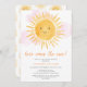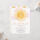 Familjen inbjudan och vänner till din sol-temerade flickas babydusch med den här söt babyduschinbjudan. Texten "Här kommer Sol" i snyggtens typografi med en söt gult vattenfärgen sol och rosa moln. Baksidan är dekorerad med ett leende sol mönster. Enkelt anpassade. Ursprunglig vattenfärg © Michele Davies.