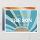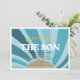 Den här "här kommer sonens" barnduschinbjudan har sol i blå skuggor med återtryck. Den omvända sidan har en bakgrund med regnbåge färg. Anpassa efter dina behov. Du hittar fler matchande produkter i min butik.