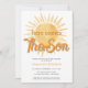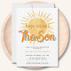 Inbjudan familj och vänner till din sol-matade pojkes baby med denna söta inbjudan. Det är dekorerat med snyggt-typografi och gult-vattenfärg sol. Baksidan är dekorerad med sol mönster. Enkelt anpassade. Ursprunglig vattenfärg © Michele Davies.