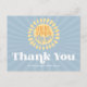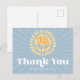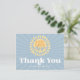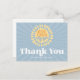 'Här kommer sonen' Solsken Tacksamt kort som matchar din inbjudan. En blå pojke baby shower design med en retro stil.