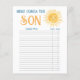 Detta charmiga Gissa vem-lek-kort har en leende akvarell sol med orden "Här kommer sonen" i stilfull typografi.