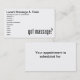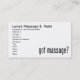 Efter den mycket populära reklamen har vi har den här toppen söta "Har Massage?"-designen på tonvis med produkter så att du kan använda den på dina affärskort för massage, tack vare kort eller ge som kundgåvor. Finns i svart text eller benvit.