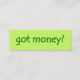 Ett grönt affärskort med parodin "har money?". Det finns några andra gröntar som fungerar bra med bilden på dessa profilkort.