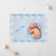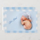 Här|Pojke Blue Gingham Modern Birth Meddelande