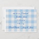 Söt pojke-födelsemeddelande med blå gingham-bakgrund, Modern design. Blått och vitt