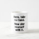 För sarkasmen älskare i oss alla. Kolla in den här häxan: "Ta min hand. Nu kan du ta med dig det." -design på kläder och presenter.
