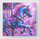 Hård Pastel Teckning Coola Tones Carousel Horse Fyrkantig Klocka