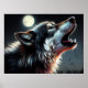 Hård Pastel Teckning Varg Howling Måne II Poster