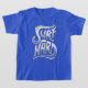 Surfa Hård typografi med vinkar och vatten känsla på det vita breven och i den sammansättning som bildar en stor S. Bra-design för surfare och sommartid på stranden.