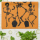Halloween Skeletons Macabre Dance, fladdermus, häxkatter och grav-stenar, alla inslag samlade för att skapa ett skådespel mönster. Originalvektorgrafik copyright BluedarkArt.