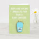 Ett humoristiskt kort för att le över pappa ansikte. Det finns en hand plockade-blå saneringsapparat flaska med ett lustigt handskrivet budskap i gröntens bakgrund. Bristen på handsaneringsmedel på grund av COVID-19 har skapat panik och oro. Detta kort är ett försök att se det ur ett annat perspektiv och ge tecknad. Budskapet är att pappor som du är svårare att hitta än en handssajt.