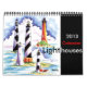 Ursprungliga vattenfärgsmålningar av fyrar varje månad i den här kalendern.