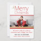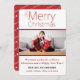 Detta moderna helgdag-kort ger er familj och vänner varmt önskemål för ett God jul och ett Gott nytt år. Anpassa med vågräts foto, personliga hälsning, familjens namn och enskilda namn. Kortet återgår till ett glatt, rött och vitt "God jul" mönster. Fira årstiden med det här helgdag från Cherry Lane Designer!