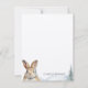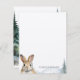 Ett modernt notecard med elegant, som innehåller en vattenfärgad kanin i detalj, i en skog på baksidan av kortet och en text på framsidan.