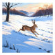 I denna pittoreska scen springer en majestätisk hare över ett snölastat fält i det mjuka vinterljuset. Denna stiliserade akvarellbild fångar den otämjda skönheten i naturen och inbjuder dig att omfamna den lugna och livliga vinterskogen.