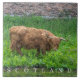 En vacker syn på en Highland Cow i Skottland som är tryckt på en keramisk bricka i souvenir.