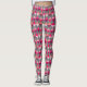 Leggings med mönster i ett Mid-Century Modern Harlekin-mönster av staplade trianglar som bildar diamantformer - nyanser av vinrött, rosa, beige och korall på en grafitgrå bakgrund