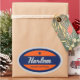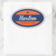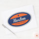 Oval signagedesign som presenterar grannskaparna av New York City. Officiella orange- och blåttfärger av NYC. Harlem Manhattan.