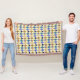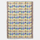 Modern Harlequin mönster, i mitten av århundradet, av staplade trianglar som bildar diamantformer - skuggor av mjukt denim blått, hals och tan på en kräm/benvit bakgrund