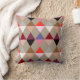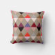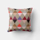 Modern Harlequin mönster i mitten av århundradet, av staplade trianglar som bildar diamantformer - skuggor av rosa, hjort, vin, grått och tuppe på ett lätt taupe än dekorativ kudde
