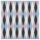 Ett halvsekelinspirerat mönster med en harlequin diamant mönster i blått, dammigt lilak, svart och vitt.