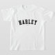 Harley! Är ditt namn Harley? Eller har du en make, en pojkvän, en male familjemedlem eller en manlig vännen namngav Harley? Om så, är denna "baner" skjorta exakt gåvan som du söker efter! Designen presenterar "Harley" i välvd svart bokstäver över bröstkorgen i klassikerhögskolastilsorten.