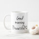 Ett älskvärt bra morgonmeddelande för din soulkompis på en kopp av kaffe. Denna mugg kan vara den perfekta gåvan för din flickvän, pojkvän, make eller fru på valentin dag, jul eller på henne/hans födelsedag. Tyck om livet och tyck om morgonkaffet.