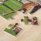 Detta ursnyggt landskap visar dyrbara hästar som framme betar på nytt grönt gräs av en majestätisk ladugård.