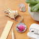 Härlig rosa ros rund silverfärgad nyckelring