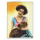 Den härliga ung flicka och hon katten som glamorös fransk modellerar, fotograferar glamourfotoet av en härlig ung flicka från frankriken och henne katten.