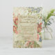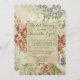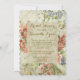 Bryner den blom- inbjudningskort för möhippan för ursnygg vintage som presenterar nätt korall-, blått- & vitblommor som är fastställda på en shabby chicsolbränna, bakgrund. Stilfull bröllopinbjudan för en vår, en sommar, en vinter eller en nedgånginbjudningskort för möhippan. Bläddra vår blom- möhippainbjudan över för att finna en utsmyckad matcha baksida för ett extra speciellt handlag. Söten stansde kammusslakanter.