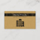 Härlig fastighetmäklare, konsulent, konsulentsymbolsvisitkort. Det perfekta kortet för någon fastighetsmäklare, mäklaren, konsulenten, leverantör, hårdnar arbetaren eller det fabriks-, carpentry- eller konstruktionsföretaget. En subtil vintagepappbakgrund med en elegant logotyp med symbolen av en kontorsreklamfilmbyggnad.