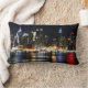 Den kalla lumbaren kudder presentera ett färgrikt foto av den New York horisonten på natten med dess som tändas upp byggnader som reflekteras i den mörka floden.