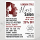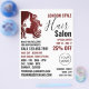 Hårlogo, frisör, frisersalongrejs reklamblad