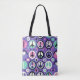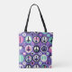 A imagem mostra um padrão composto por vários símbolos e formas. Há múltiplos sinais da paz em cores como rosa, preto e branco. Esses sinais estão intercalados com corações e círculos em tons de verde, azul, roxo e rosa. O fundo é roxo com pequenos enfeites como estrelas e pontos em tons mais claros. Esta imagem é interessante devido às suas cores vibrantes e à repetição do símbolo da paz que é comumente associado a movimentos anti-guerra e uma mensagem geral de harmonia.