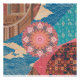 Ett bedövande pussel som visar fusionen av marockanskt mönster i rik ördiga toner, japanskt vinkarare i blå nyanser och indiskt mandalas i klara orangar och lila.