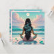 Vackra ai-konst som skildrar en underbar kvinna som på stranden mediterade med pina och blå moln, havsyta vinkarare, vit sand och havsglas.