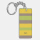 Three-color design with harmonious stripes. Clean lines in three strong colors for your key chain. Add your name or a quote at the bottom and additional information on the back. This variant is the bright color scheme in brown, yellow and green.