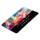 Färgstark, konstnärlig vit,vattenfärgad färgmålning med abstrakt contemporary med tre spelare figurer,blommigt-snurrar,ro,blommor,guld-gnistor,silver-folie i pulserande gult,röd grönt,blått,rosa fuchsia färg.