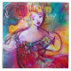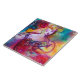 Färgstark, konstnärlig vit,vattenfärgad färgmålning med abstrakt contemporary med tre spelare figurer,blommigt-snurrar,ro,blommor,guld-gnistor,silver-folie i pulserande gult,röd grönt,blått,rosa fuchsia färg.